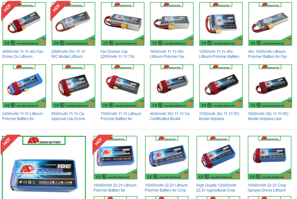 Shida Battery established in 1996, specializes in design, manufacturing and marketing of high quality Lithium Polymer Batteries.